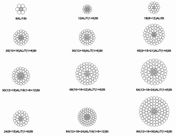 | 鋼芯鋁合金絞線(AACSR) | LHAGJ、LHBGJ | JLHA2/G1A、 JLHA2/G1B、 JLHA2/G3A、 JLHA1/G1A、 JLHA1/G1B、 JLHA1/G3A |