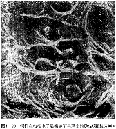 Cu2O粒子與基體銅不相“濕潤”,故呈球粒狀,其平均直徑為0.7-1.Oμm如圖1-28。